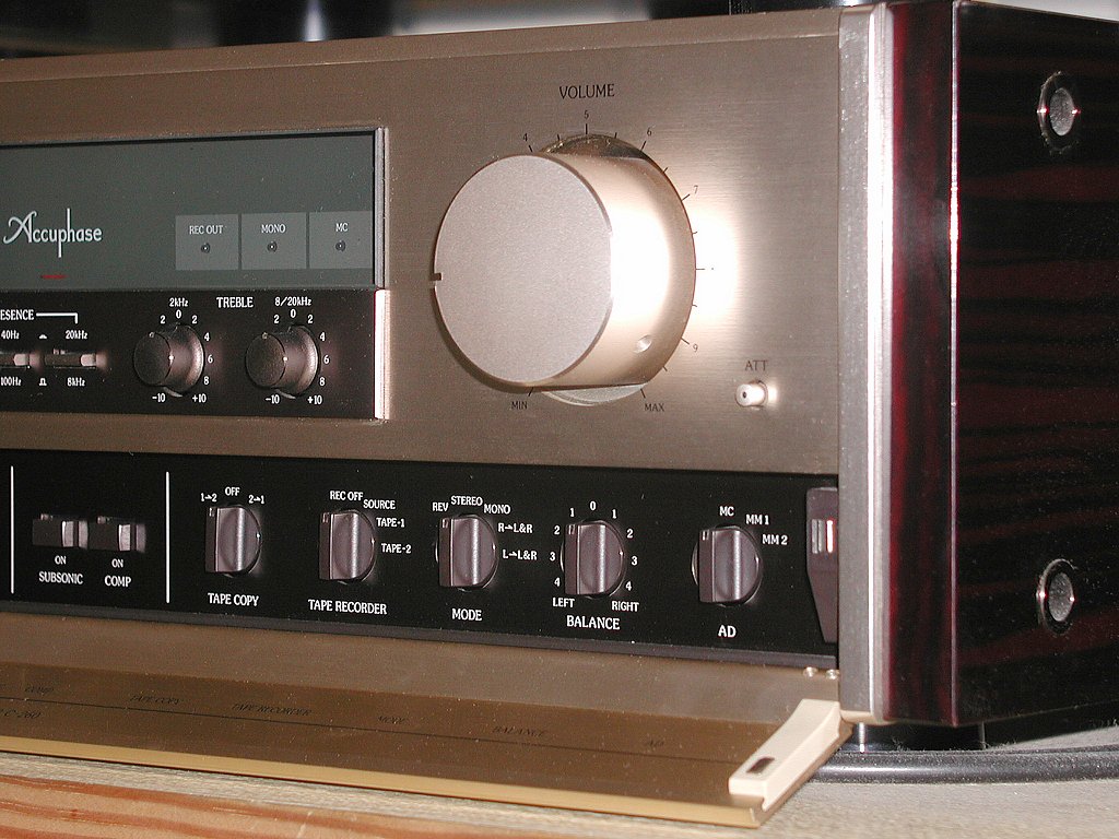 Der Lautstärkeregler, alle Klangregler und Eingangswahlschalter sind perfekt gelagert, d.h. es gibt keinerlei Spiel oder eine "wackelige" Montage! Die Knöpfe sitzen richtig gut fest, so, wie man es von einem Gerät dieser Klasse auch erwarten kann. Diese Art der Verarbeitung ist aber auch typisch für Accuphase! Eigentlich nicht mehr der Rede wert, weil sowieso schon längst Standard bei Accuphase.